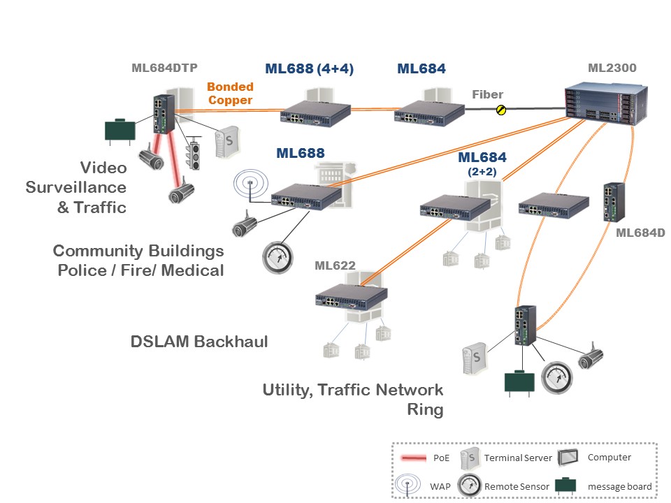 The ML680 product line of Ethernet switches can be used to offer Ethernet access and backhaul for various applications in Telco networks as well as for Traffic and Industrial networks