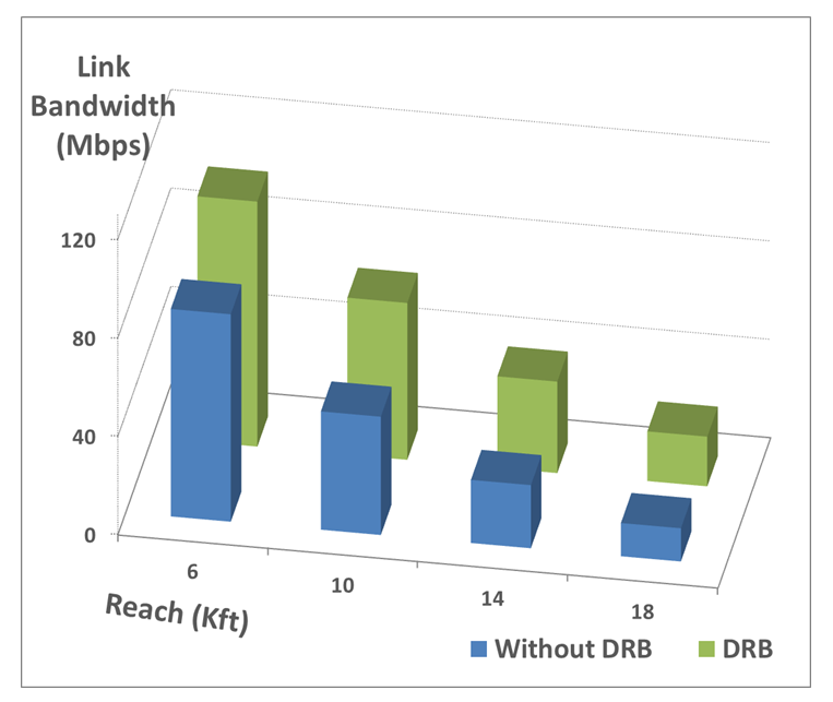 Actelis’ DRB results in tangible performance improvements under a wide variety of operational conditions, even in environments where spectral deployment rules limit the potential for higher bit rates. The SNR increase, resulting from DRB and the higher modulation constellations supported by Actelis solutions enable more efficient frequency utilization and reduced power transmission.