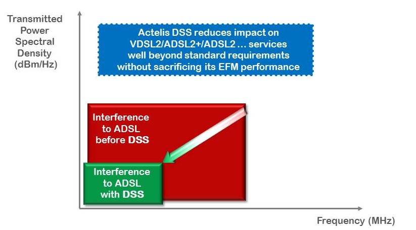 Utilizing DSS, carriers can further protect the performance of existing residential/business broadband services (e.g. ADSL, ADSL2+, and VDSL2).